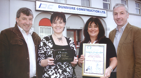 The company received a N.H.B.C Award for its Rathcillian Development at Bryansford Road, Newcastle and a “Technical Excellence Award” for the Castleglen Development in Dundrum. Recently, for its Lisnisky Lane Development in Portadown, Dunmore Construction won the coveted C.R.L (Construction Register Ltd., UK and Ireland) “Award For Excellence” for Best Large Development.